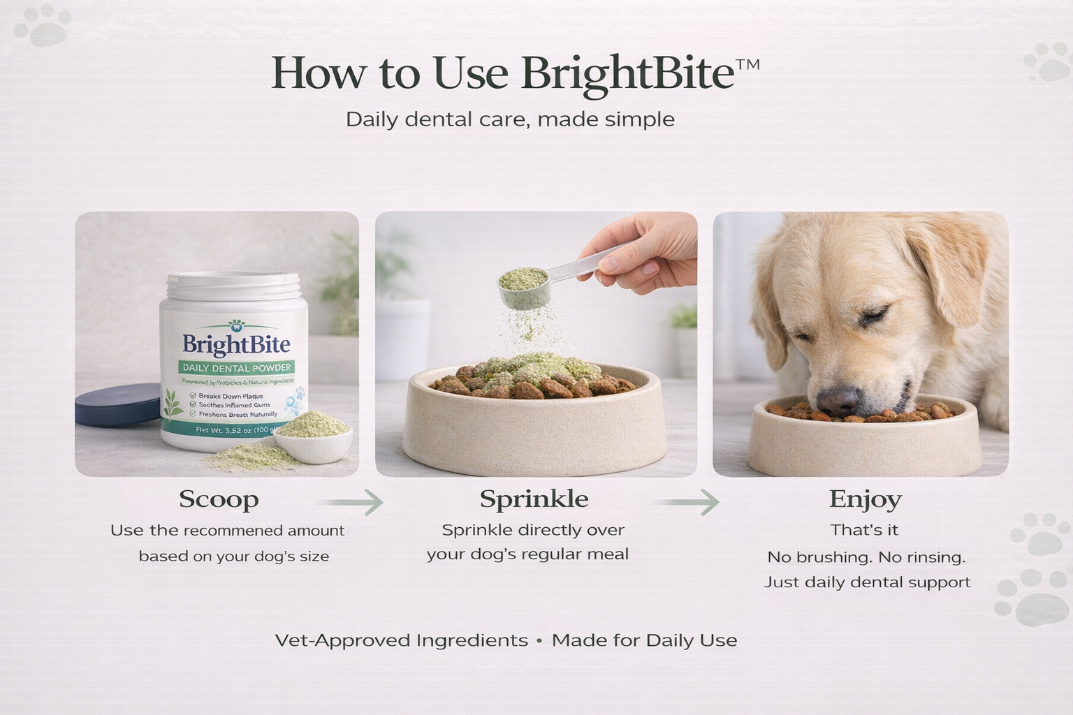 BrightBite makes it easy to protect your dog’s teeth every single day, using natural ingredients that support oral health before problems take hold.